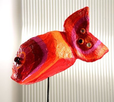 Die "Pflanzenflüsterer" sind aus Ton gefertigt und auf einen Stahlstab gesetzt. Sie werden dort in die Erde gesteckt, wo so recht nichts wachsen will.
