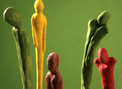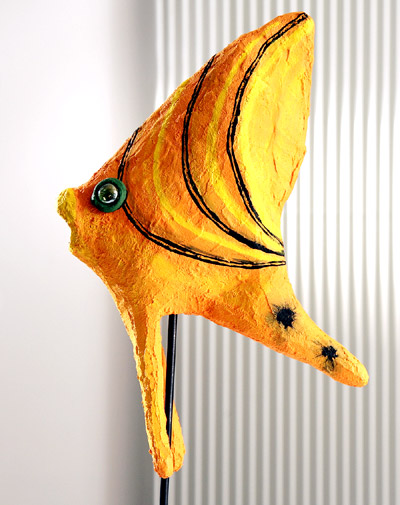 Die "Pflanzenflüsterer" sind aus Ton gefertigt und auf einen Stahlstab gesetzt. Sie werden dort in die Erde gesteckt, wo so recht nichts wachsen will.
