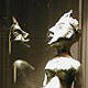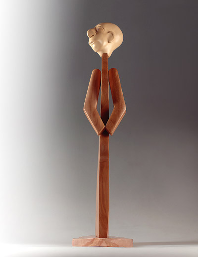 Modellierter Kopf und Hände, versilberte Schale,