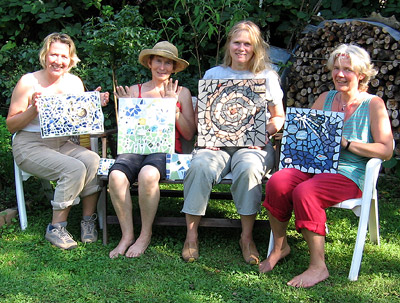 Teilnehmerinnen des Kreativkurses mit ihren Werken